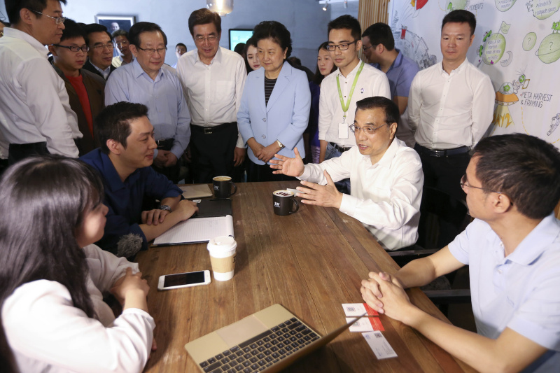 2015年10月19日,李克強參加全國雙創周活動時說,大企業員工和草根創業者通過創新創業都可以成為更多財富的創造者和擁有者。這既是收入分配結構調整的重要內容,也促進了社會公平正義。“雙創”為所有人提供了公平競爭的機會,讓有能力的人通過自身奮斗獲得上升通道。(資料圖)