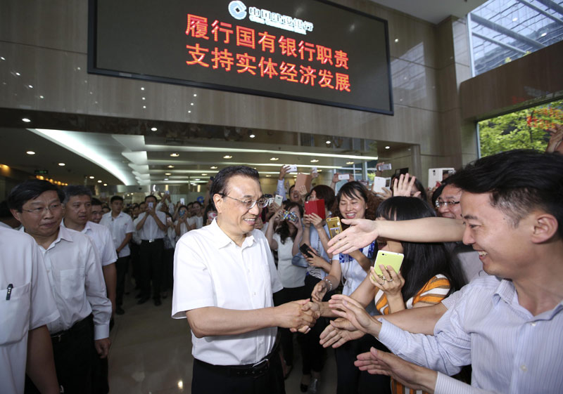 圖為李克強(qiáng)總理2016年6月20日下午到中國建設(shè)銀行考察。