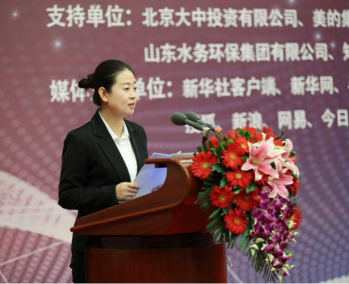 山東水務環(huán)保集團董事長曲延華作污水處理技術報告。