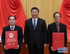 8日上午,國家科學技術獎勵大會在京舉行。 習近平出席大會,并向獲得2017年度國家高科學技術獎的南京理工大學王澤山院士和中國疾病預防控制中心病毒病預防控制所侯云德院士頒發獎勵