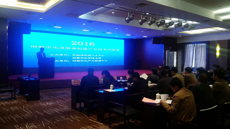 2016年4月14日上午,由科技部科技人才中心和邯鄲市科學技術局主辦、邯鄲市生產力促進中心承辦的邯鄲市先進裝備制造產業技術對接會在邯鄲市招商大酒店召開。