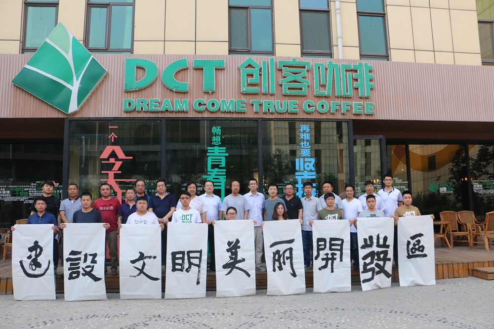 隨后是書法家們的主場,一行人在DCT創客空間開展了“邯鄲市迎接十九大書法作品評審”,并用通俗易懂的語言向我們傳授基本的書法知識,使我們都能領略國粹的魅力。后,書法家們即興潑墨,題寫“建設文明美麗開發區”,,助力我區創城工作。
