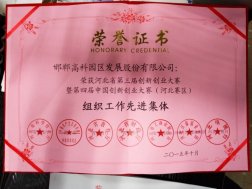在本年度舉辦的河北省第三屆創(chuàng)新創(chuàng)業(yè)大賽暨第四屆中國創(chuàng)新創(chuàng)業(yè)大賽(河北賽區(qū))決賽中,邯鄲高科園憑出色組織工作,榮獲大賽的組織工作先進(jìn)集體獎(jiǎng)。 河北省第三屆創(chuàng)新創(chuàng)業(yè)大賽暨第四
